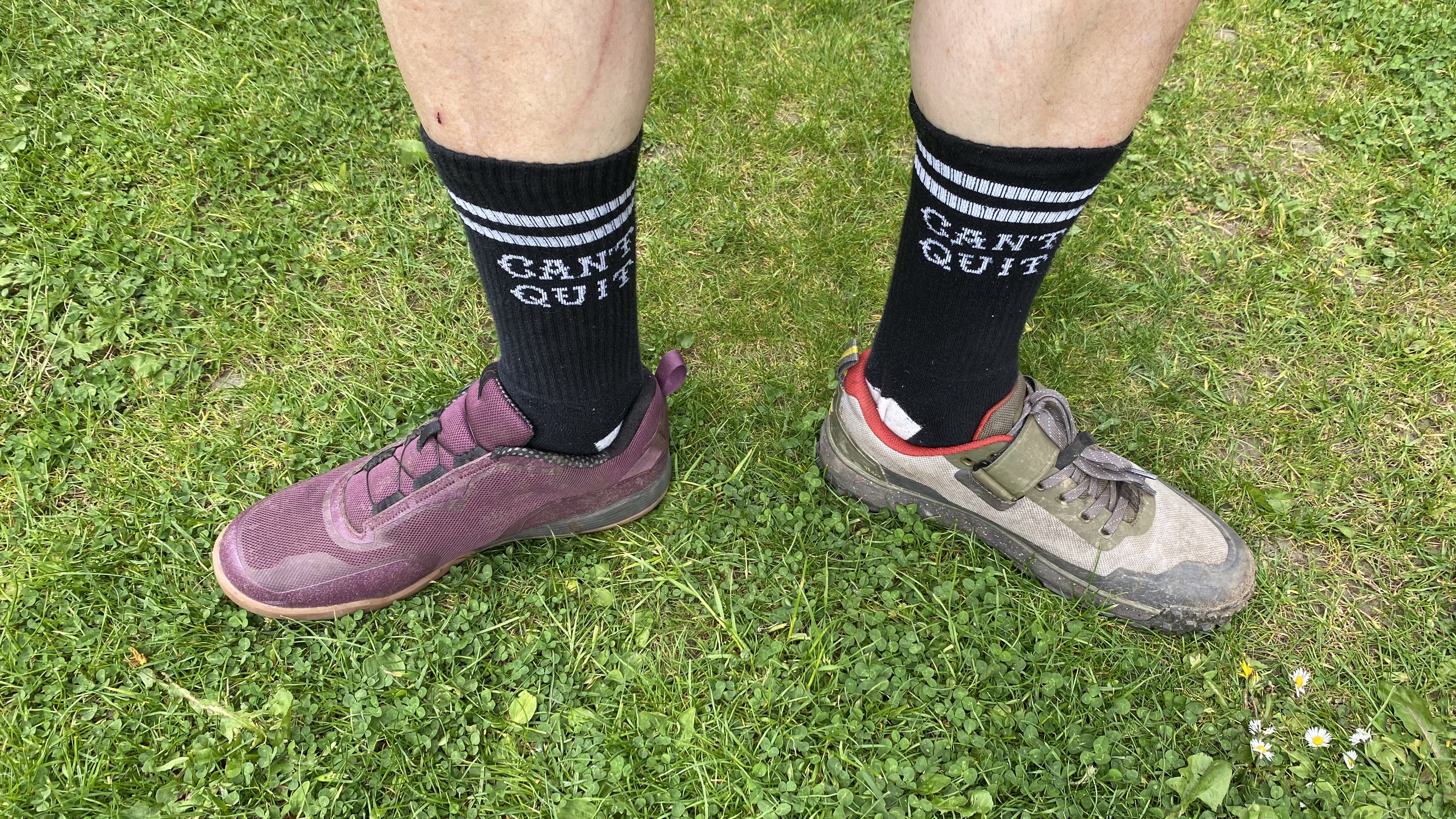 That's why you’ll generally find me riding about in odd shoes and gloves, possibly with another non-pair in a backpack. Because laces vs ratchet vs dials isn’t as simple as scissors vs paper vs stone and EVERYONE says their sole is a perfect balance of pedaling and power delivery. It also explains why I hang about trail head car parks like a 14 year old outside an off-license, asking if I can have a quick go on somebody else’s bike just to double-check how a tire rolls or a fork feels before I start wearing more holes in my keyboard.